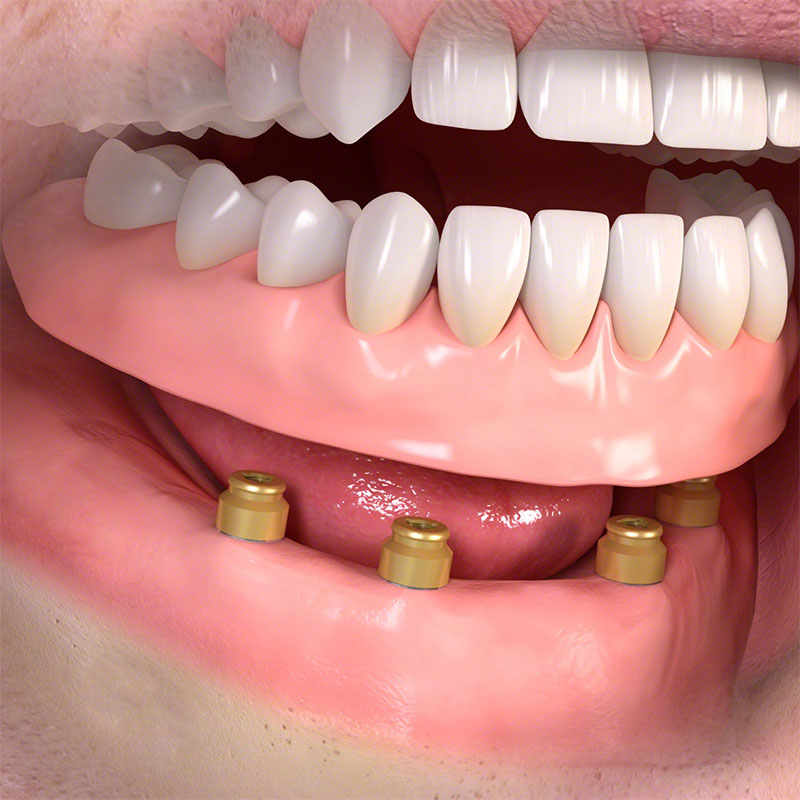 A more permanent and secure alternative to removable dentures, this option can replace all upper or lower teeth.